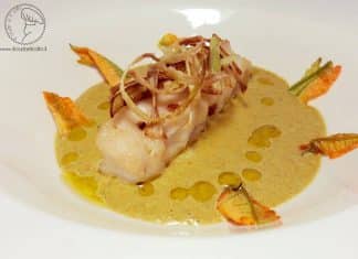 Filetto di merluzzo con porro croccante e salsa di fiori di...