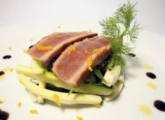 Tonno marinato al balsamico con cruditè di finocchi e zucchine ai...