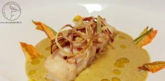Filetto di merluzzo con porro croccante e salsa di fiori di...