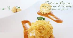 Rocher di Caprino con panure di tarallini e coulis di pesca